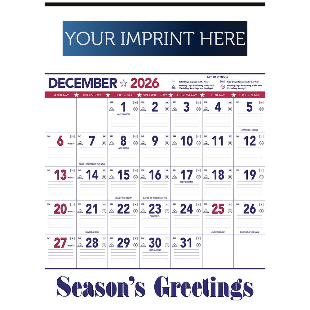 Rely on this giant planner to keep you on track. Its date blocks feature faint ruled lines along with symbols denoting the days elapsed and remaining in the year, work days remaining without Sunday & Saturday, and days remaining without Sunday. The SFI® label means that materials used for this product have been responsibly sourced.